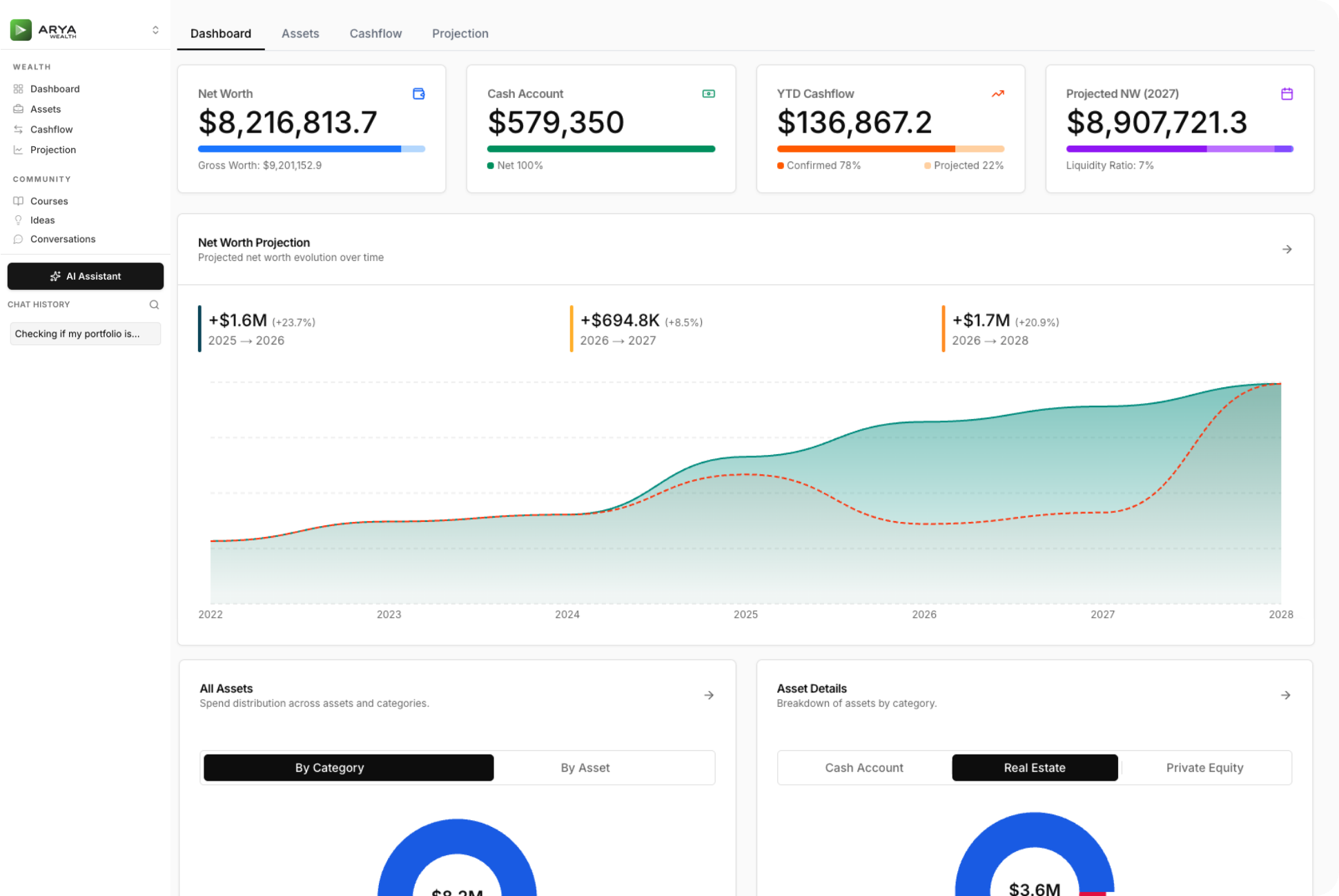 Most people have a rough idea of their finances but no real picture of how it all fits together. ARYA Wealth changes that. One dashboard for all your assets, cashflow and net worth. Free, forever.